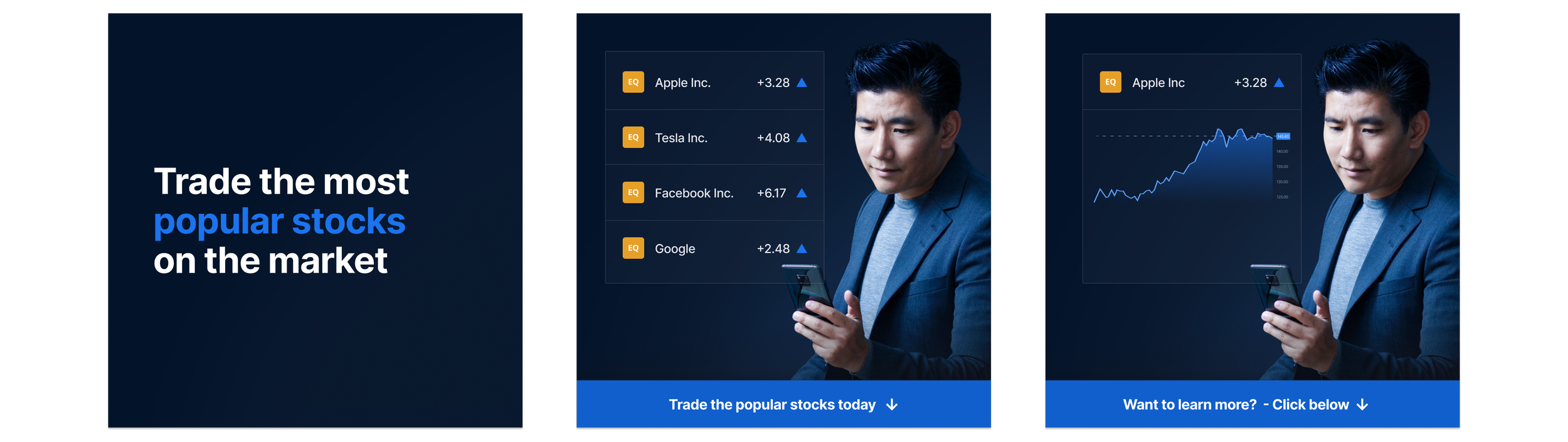 In a constant moving market, we wanted to show off relevant information on our social media and programmatic assets. For this tactical funnel track, we wanted to show off the three most popular stocks on the markets for the last three days - sourced from a live data feed and linked to our assets.